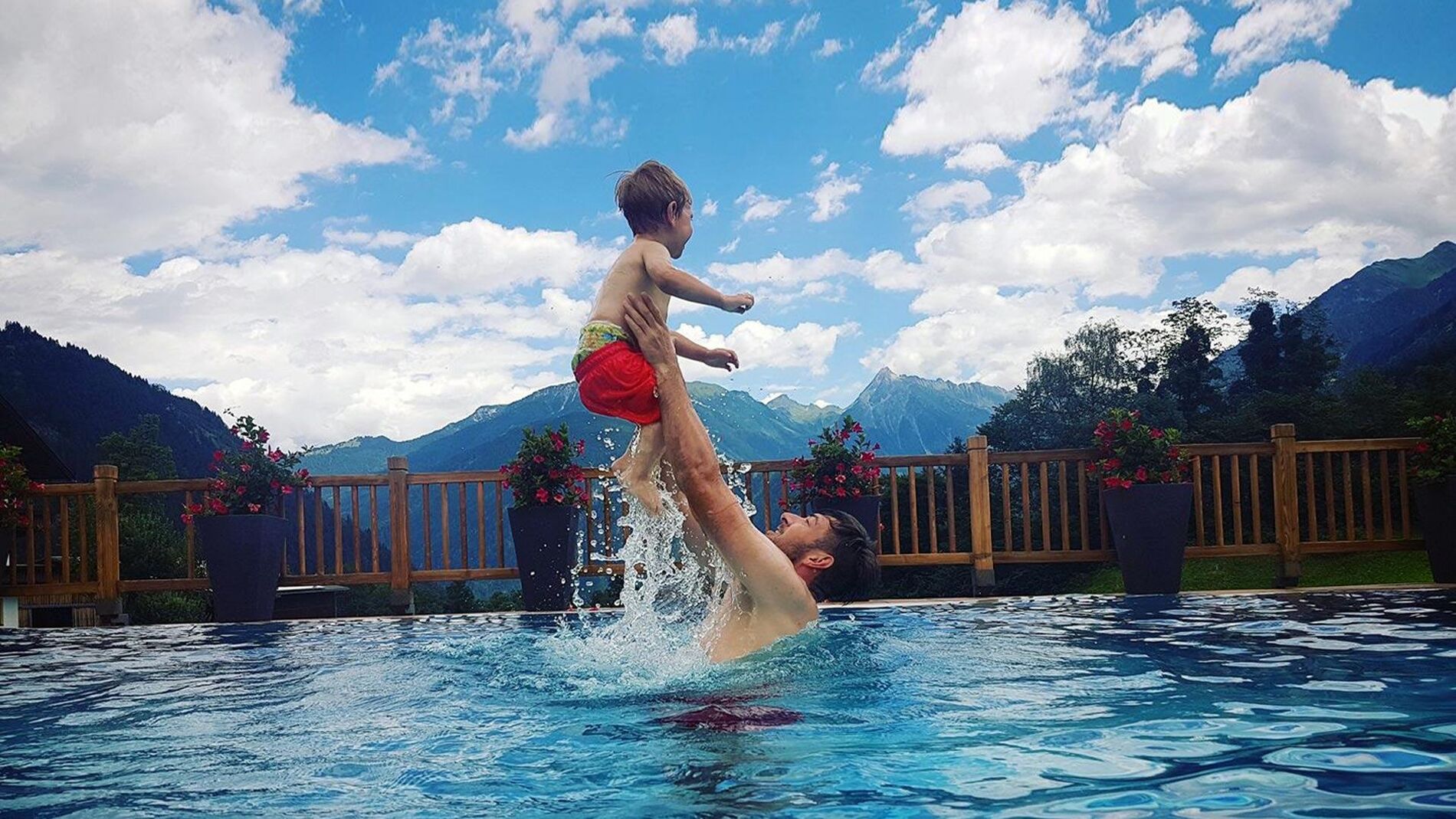 Anschließend tauchen Sie ein in die wohlige Wärme des Außen-Whirlpools. Wasserdampf steigt auf und Sie genießen den einmaligen Blick auf die Berge. Für unsere Kinder ist der Außenpool natürlich auch ein Traum. Die Eltern können dabei genüsslich aus dem Liegestuhl zusehen, wie die Kleinen im Schwimmreifen auf dem Wasser Spaß haben.